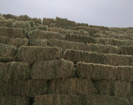 5.干草的含水量。干草含水量的高低,是决定干草能否长期贮存,不变质的主要指标,按含水量高低,干草可分为四类,即干燥(小于14%)、中等干燥(14%-15%)、潮(16%-17%)、湿(大于17%)。