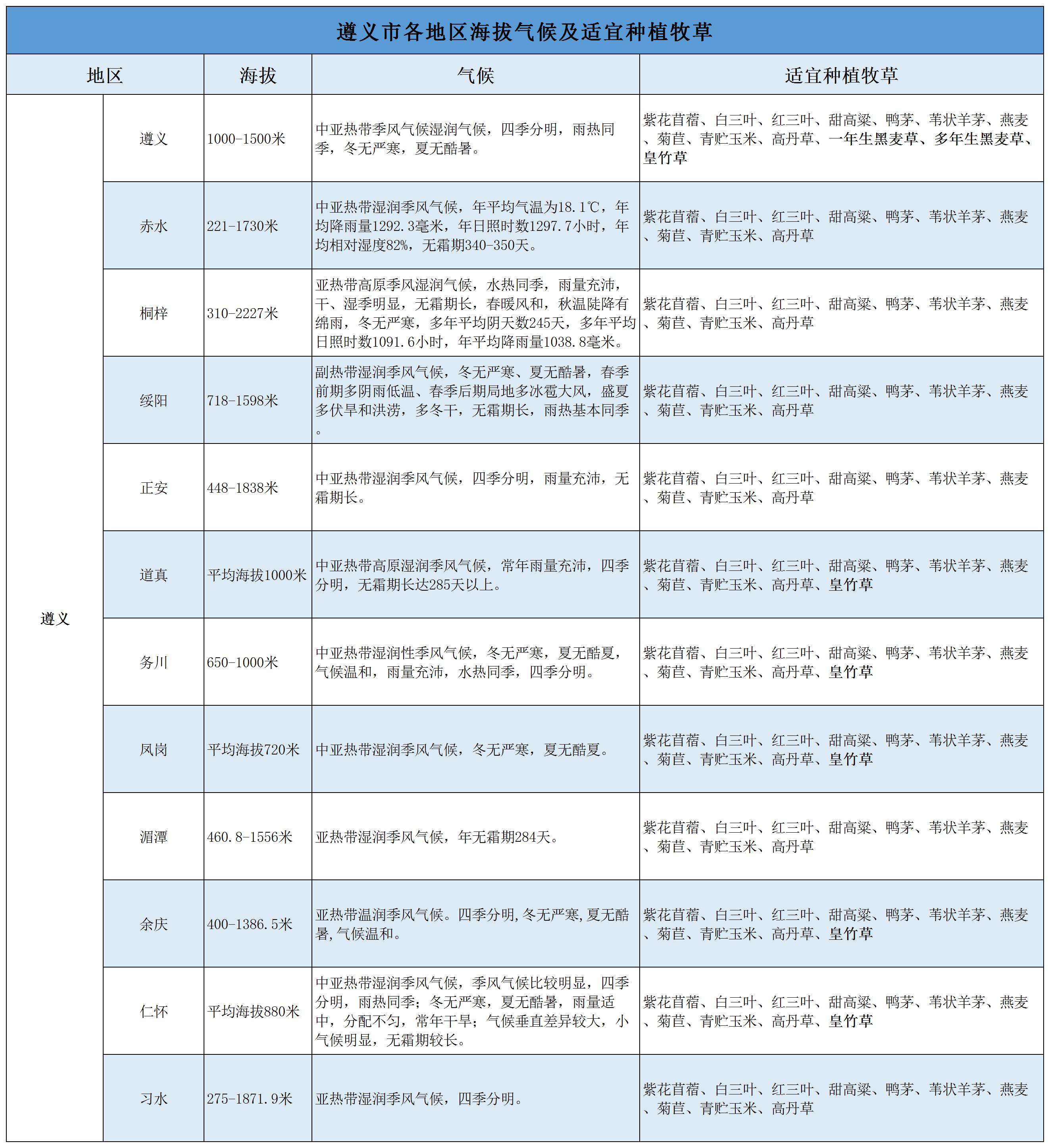 遵义市各地区海拔气候及适宜种植牧草_贵州省草产业技术体系【官网】